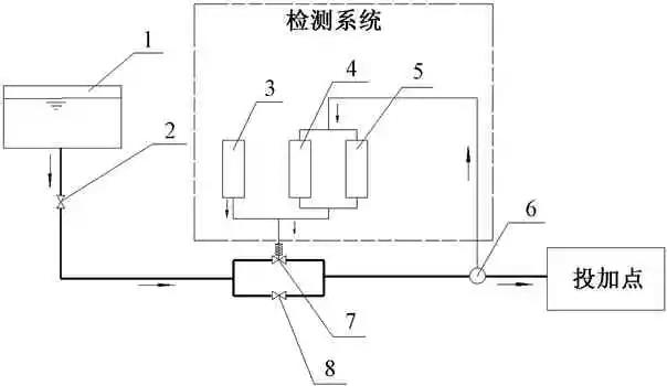 5-缺药检测;6-浮子流量计;7-开启型电磁阀;8-手动阀
