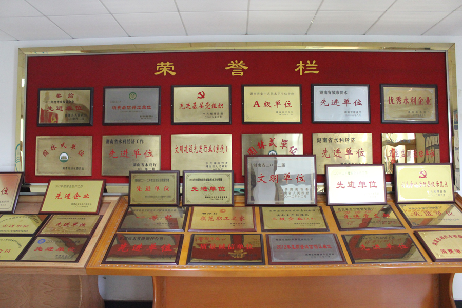 历年来公司先后获得了“省级文明单位”、“省级城镇供水行业文明创建工作先进单位”、“省级集中式供水卫生管理先进单位”、“省五四红旗团支部”、“省级青年文明号”、“省级巾帼文明岗”、“省级文明卫生单位”、“市级安全生产先进单位”、“市级职工模范之家”等荣誉称号。