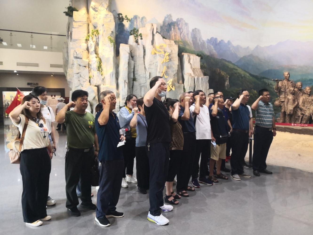 公司党支部书记、总经理贺建荣同志带领党员在纪念馆大厅重温入党誓词,重忆入党初心。